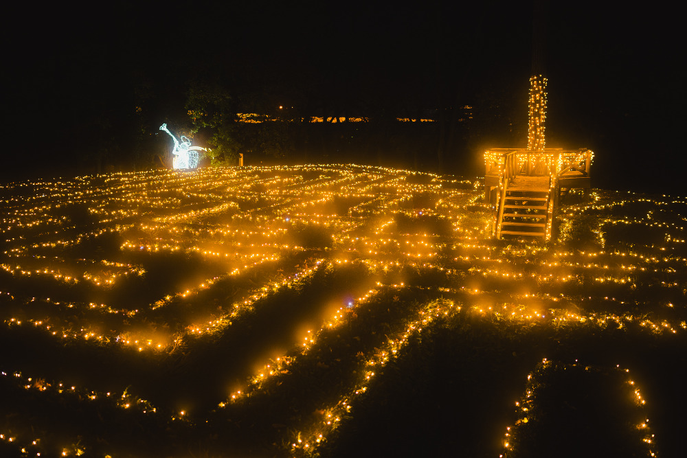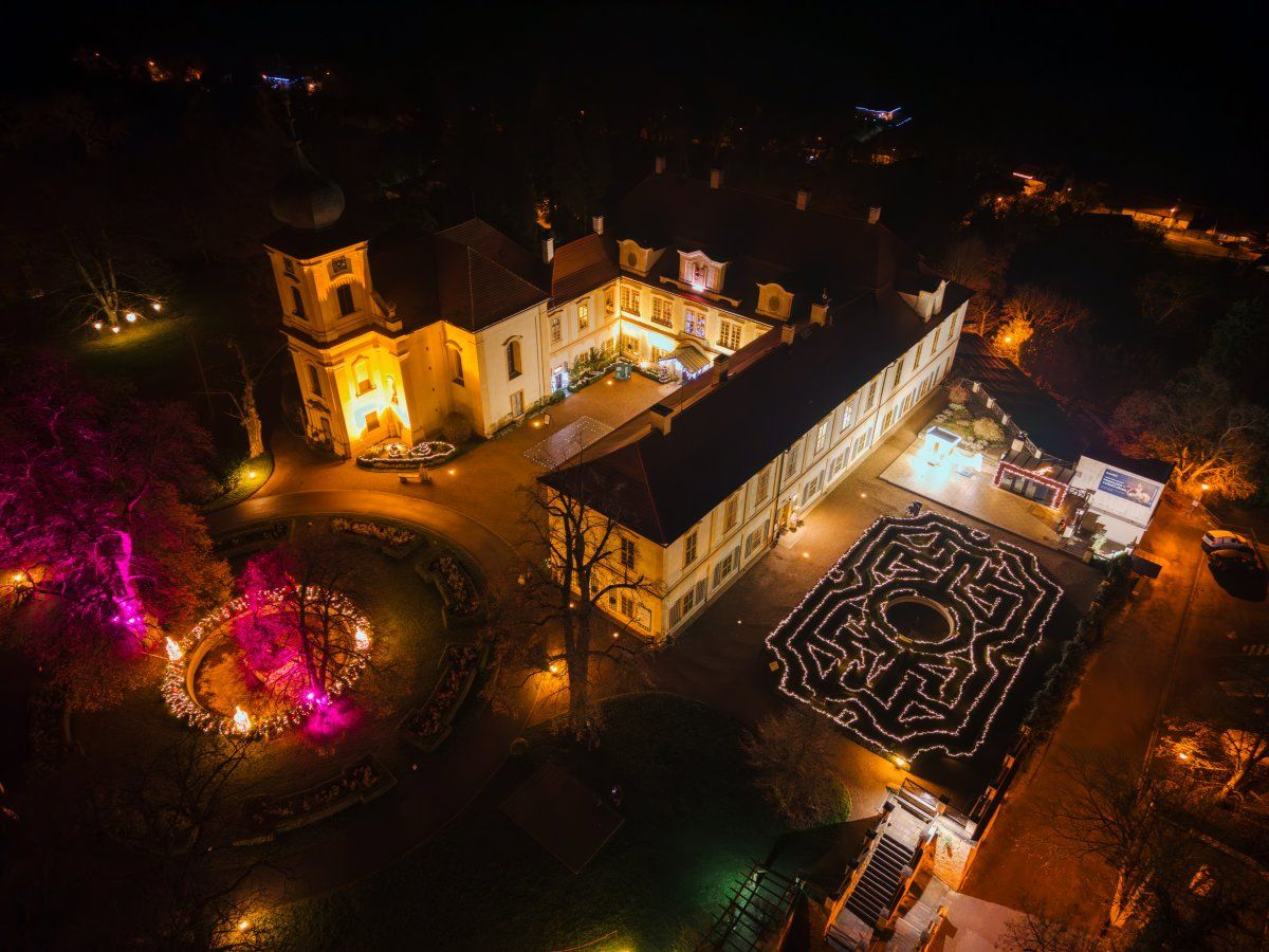 Denně od 16:00 osvětlený zámecký park je předurčený k romantickým večerním procházkám. Tisové bludiště září tisíci světýlek, romantické je osvětlení zámeckého mostu a barevná světla v parku. Každý den od 17:00 na vás čeká působivá světelně-hudební show promítaná přímo na zámek.