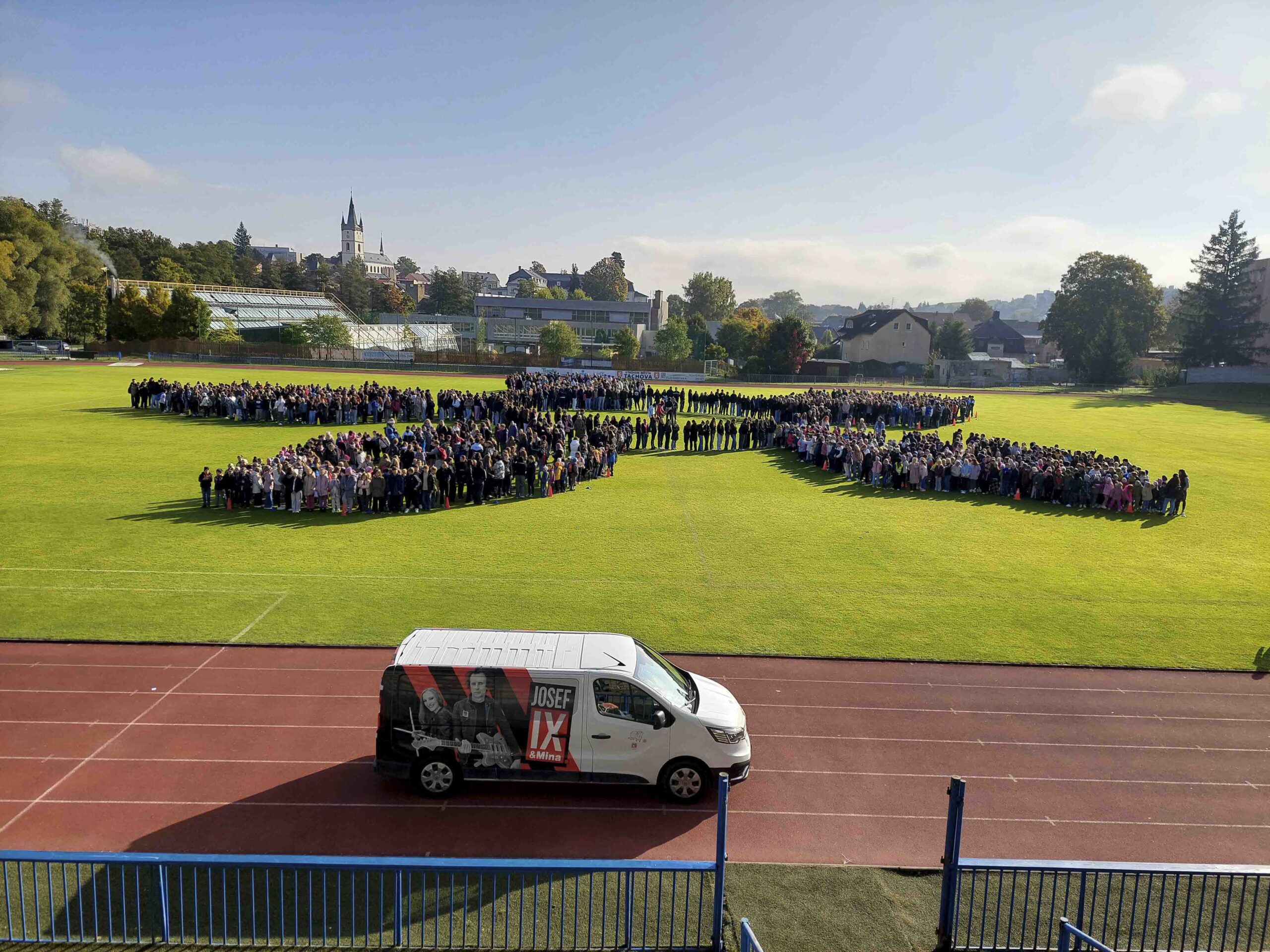 Téměř 1 800 žáků, učitelů a zaměstnanců škol vytvořilo živý obraz obří květiny.
