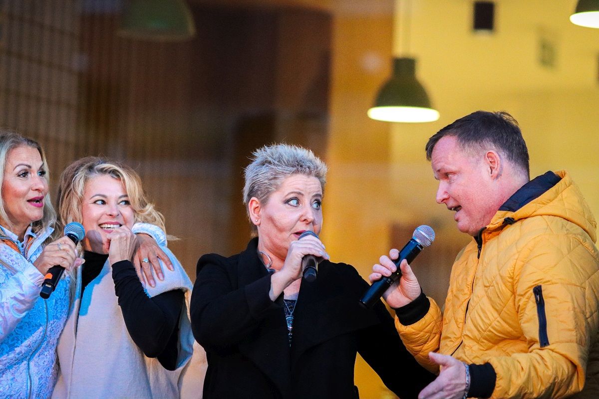 No a interprety už pak čekali před hotelem Element zvukové zkoušky a od 17.00 hodin začal pro všechny příchozí zdarma tento benefiční koncert, kde se střídal jeden interpret za druhým. Celou akci odstartoval Milan Devinne, který se představil i písní skupiny Queen a hned uvedl herečku Betku Stankovou, která se zpočátku trochu zdráhala zpívat, ale nakonec bravurně odzpívala třeba píseň Mně se líbí Bob z filmového muzikálu Rebelové, kde sama hrála a nebo druhou vypalovačku S nebývalou ochotou. Betka po svém vystoupení uvedla dalšího interpreta Martina France, který vsadil na tři rychlé songy a ten už pro přítomné diváky pozval na improvizované podium před hotelem herečku a zpěvačku a letošní jubilantku Yvettu Blanarovičovou, pro kterou měl France připravené překvapení v podobě dalšího dortu, který připravila hotelová cukrárna Povidloň a předala jej zpěvačce za doprovodu kolegů i diváků, kteří ji zazpívali narozeninový song Hodně štěstí zdraví.