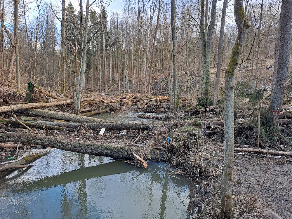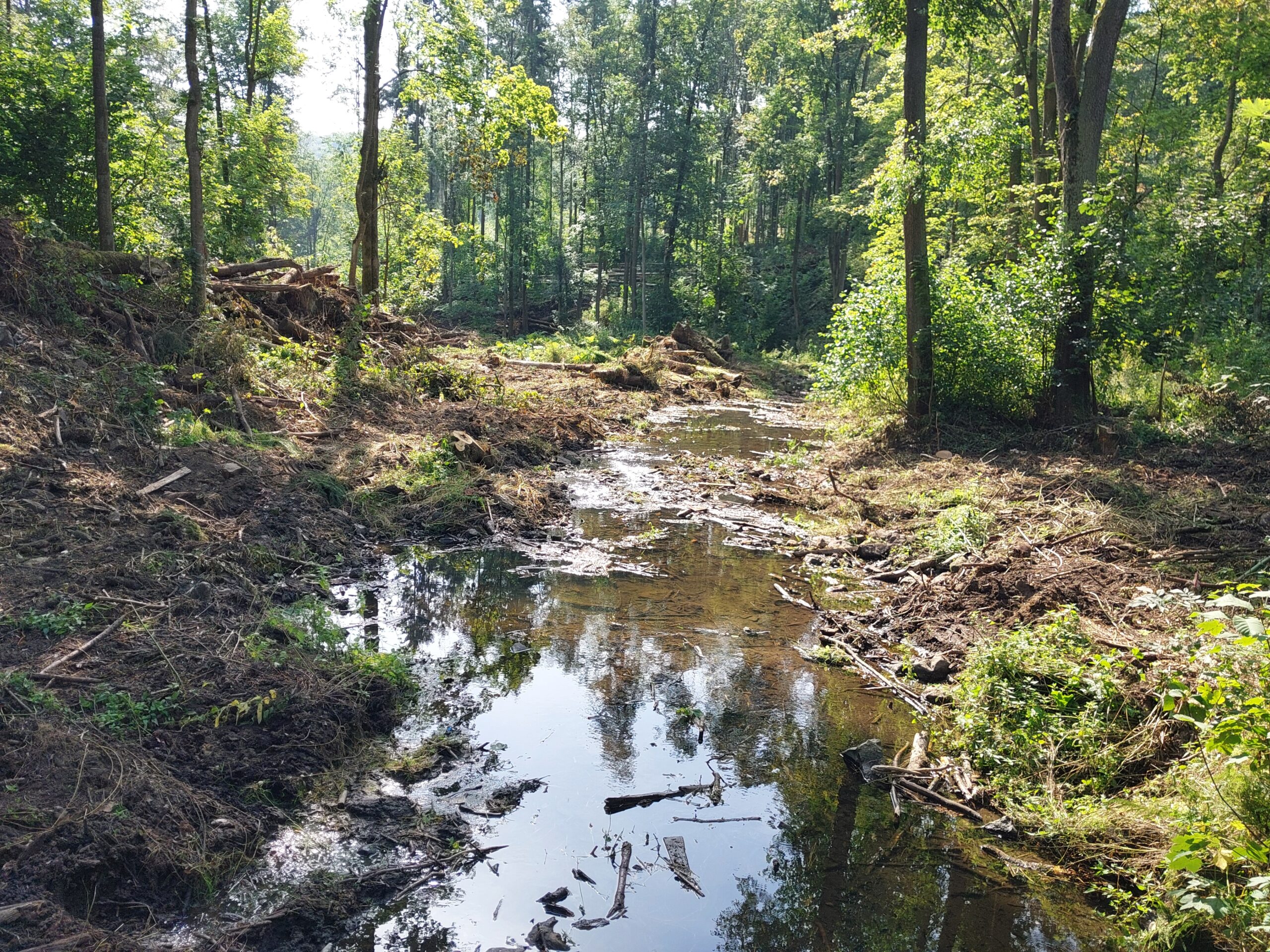 Na tříkilometrovém úseku kolem Bobřího potoka se od července zpracovávaly smrkové souše a odumírající jasany napadené houbou voskovičkou. Dříví odvážel speciální traktor s širokoprofilovými pneumatikami. Šest set metrů krychlových zůstalo kvůli podpoře rostlin a živočichů vázaných na mrtvé dřevo v porostu. K popadaným kmenům v korytě toku se těžaři dostali díky dvěma “kráčejícím“ bagrům, které šetrně uvolňovaly přístup k vodě.