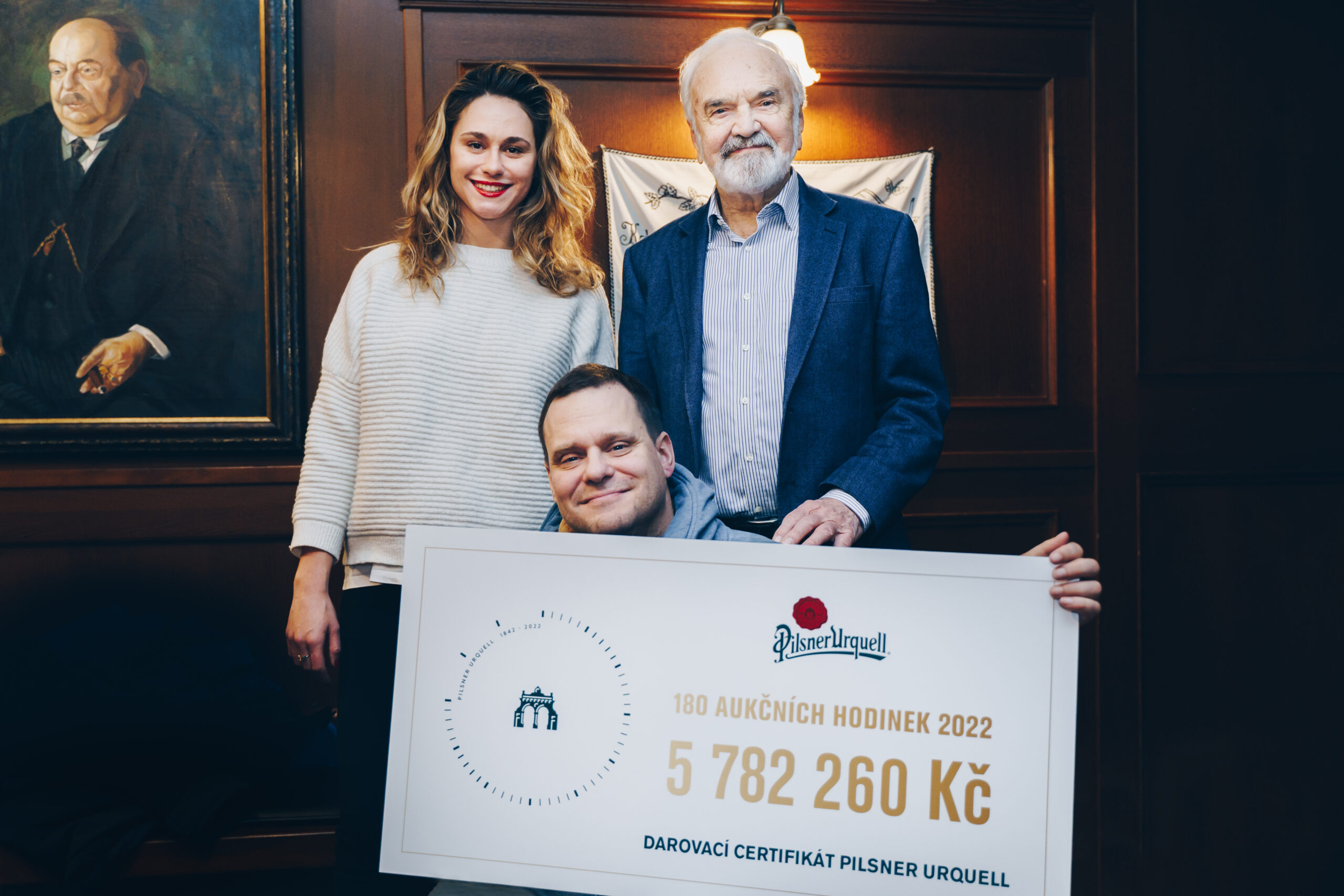 Praha, 15. prosince 2022 – Letošní dražba Pilsner Urquell u příležitosti 180. výročí uvaření první várky světoznámého ležáku vynesla rekordní částku. Šek na 5 782 260 korun určených na rozvoj služeb Centra Paraple převzali v pivnici U Pinkasů od zástupců Pilsner Urquell ředitel Centra David Lukeš a Zdeněk Svěrák, spoluzakladatel Centra.