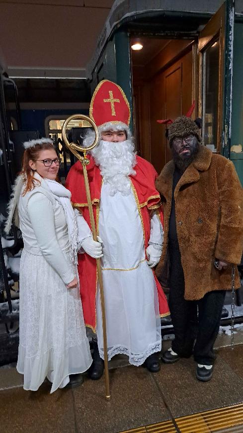 V soupravě zvláštních vlaků pojede Mikuláš s čertem a andělem a společně podarují děti drobným dárkem. Nostalgickou předvánoční atmosféru v historickém vlaku tak ocení nejen milovníci železniční historie, ale zejména rodiny s dětmi.