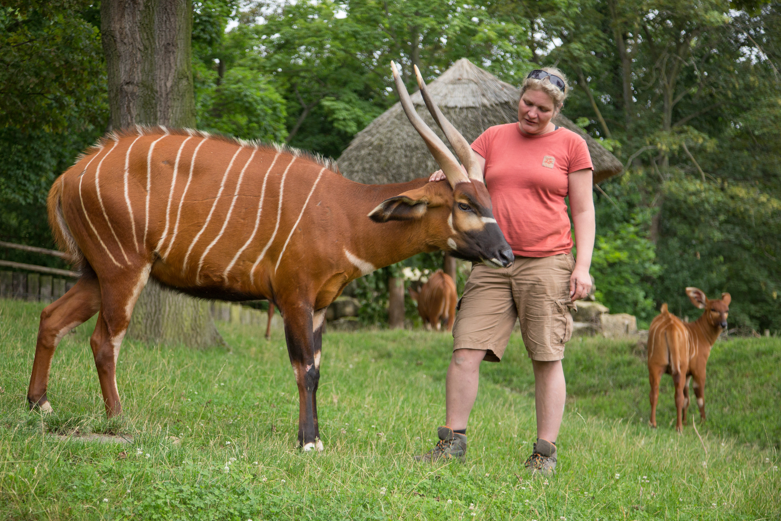 Foto 3: Dlouholetá chovatelka bongů v Zoo Praha Lucie Křížová bude v sobotu o svých svěřencích vyprávět návštěvníkům přímo u jejich výběhu – nejprve v 10 hodin a znovu poté v pravé poledne. Foto Tereza Mrhálková, Zoo Praha