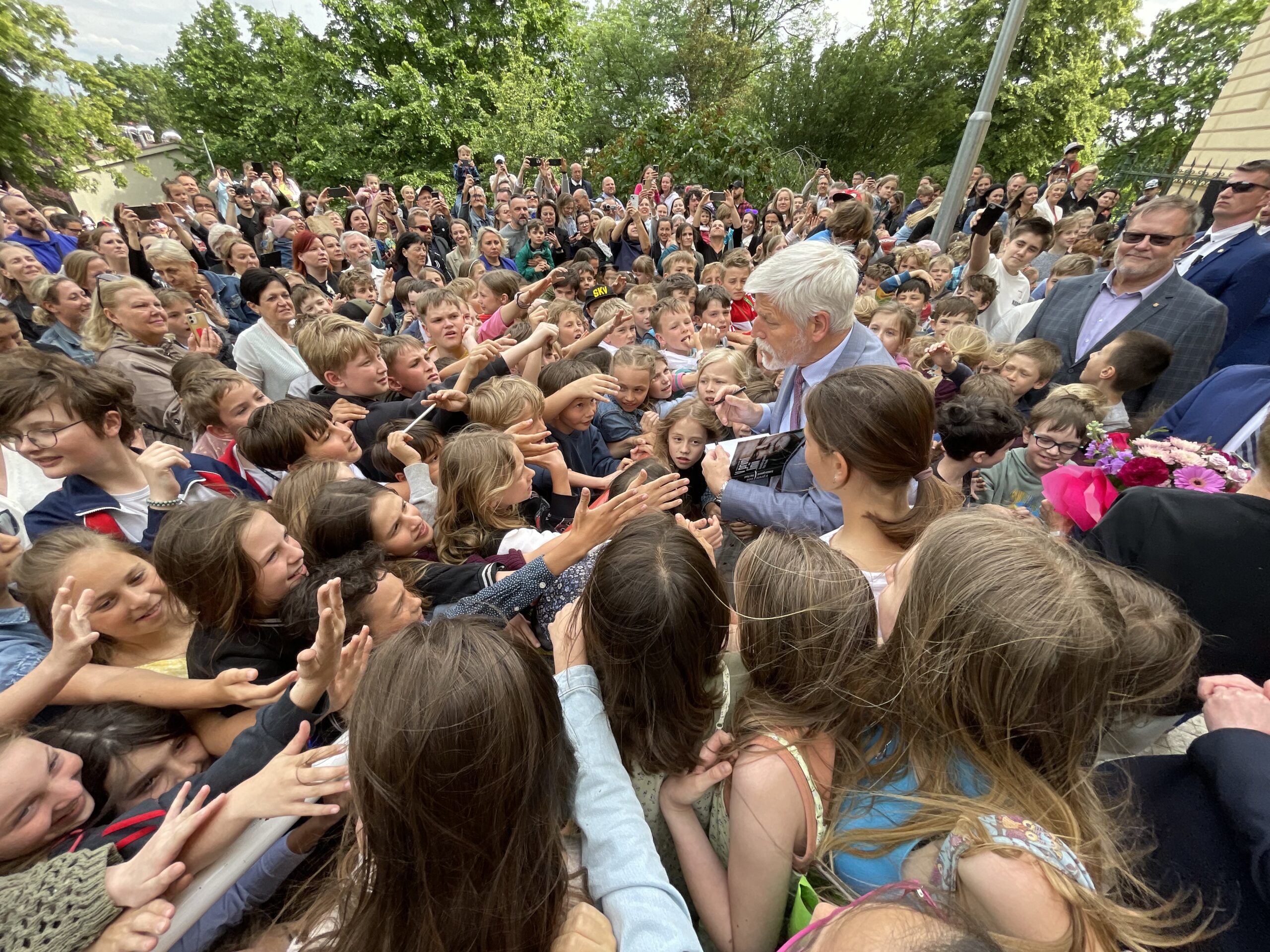 Prezidenta Pavla a představitele Prahy 2 děti přivítaly bouřlivým potleskem a zazpívaly jim stonožkovou hymnu Nezůstávej sám. K dětem se u mikrofonu připojila i zpěvačka Anna Slováčková, absolventka ZŠ Kladská. Na závěr ceremoniálu zazněla také skladba na piano, kterou zahrála nesmírně talentovaná čtrnáctiletá žačka ZŠ Kladská Klára Gibišová. Prezident dětem poděkoval za krásné přijetí a dostal od nich obrázek kočky jako upomínku na jeho oblíbenou kočku Micku, která bohužel nedávno uhynula. Poté si všichni společně s dětmi šli celou výstavu prohlédnout.