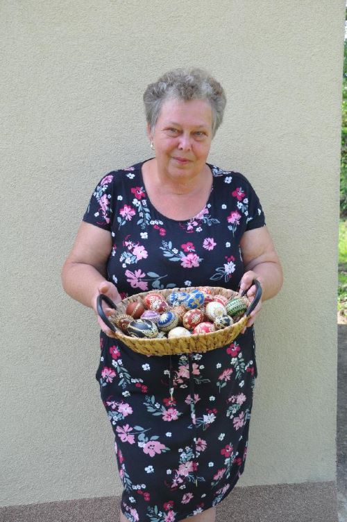 Marcela Hrabovská se zaměřuje na výrobu kraslic zdobených slámou. Jedná se o jednu z nejnáročnějších technik, vyžadující si preciznost, trpělivost i kreativitu při sestavování vzorů. Z usušené a „vyžehlené“ slámy vystřihuje drobné tvary, ze kterých skládá na vajíčko obrazce. Vedle geometrických vzorů zhotovuje také kraslice s figurálními motivy s náboženskou tématikou. Používá slámu z různých druhů obilovin, což jí umožňuje uplatnit různé odstíny žluté barvy. Pracuje s výfuky slepičích a husích vajec, které je nutno nejprve obarvit. Vedle akrylových barev experimentuje i s přírodními barvivy, jako jsou cibulové slupky, vlaštovičník, ořechové listí, saze apod. Barvením a výzdobou vajec se zabývá v průběhu celého roku.