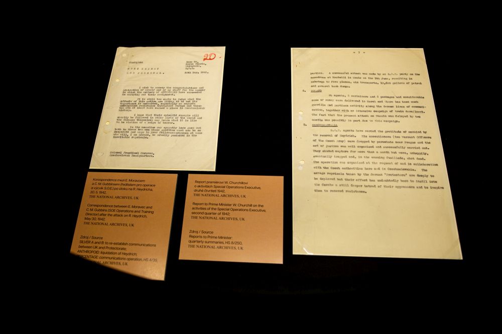 V Národním muzeu ve výstavě Nikdy se nevzdáme! jsou nově k vidění od 21. července také dva unikátní dokumenty přímo související s atentátem na Reinharda Heydricha, které do výstavy zapůjčil The National Archives z Velké Británie a do České republiky se tak dostaly úplně poprvé v historii. Konkrétně se jedná o písemné informace určené pro Winstona Churchilla týkající se atentátu i jeho dopadů a dále o korespondenci mezi zástupcem šéfa britské tajné služby generálem Colinem Gubbinsem a plukovníkem Františkem Moravcem ze dne 30. 5. 1942. Na oba jedinečné dokumenty se mohou návštěvníci přijít podívat do Historické budovy Národního muzea až do konce října 2022.