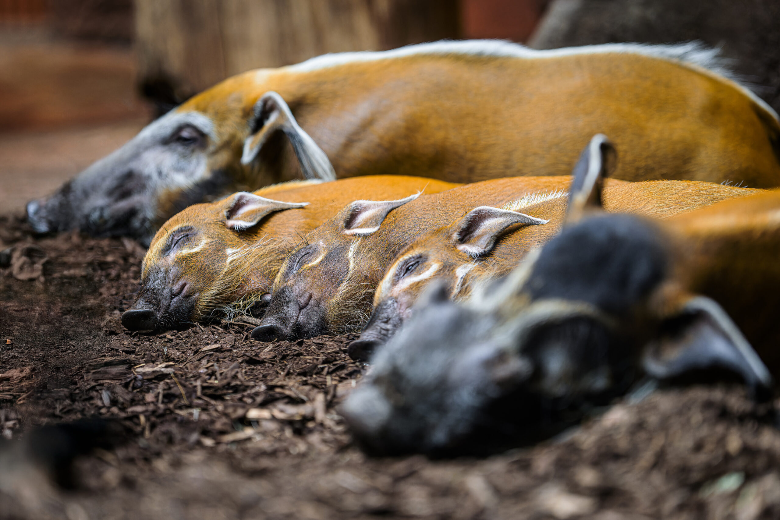 Foto: V Zoo Praha lze spatřit – navíc bez nutnosti se postit – také „zlatá prasátka“. Jde o pestře zbarvené štětkouny africké z pralesů střední Afriky. V Zoo Praha obývá pětičlenná skupina pavilon Rezervace Dja. Foto Petr Hamerník, Zoo Praha