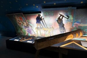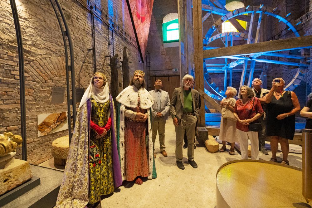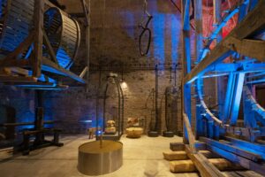 Kromě vskutku obdivuhodných obřích strojů, které jsou v nové expozici umístěny, se návštěvník v iluzivním prostředí středověkého staveniště seznámí s fungováním tehdejších řemeslných hutí, jednotlivými řemesly, která byla při stavbě potřeba, nástroji a materiály, které se ve středověku běžně používaly. Expozice je doplněna i o obrazový a filmový materiál, který dokumentuje výrobu replik strojů a jejich následné využití ve stavební praxi.