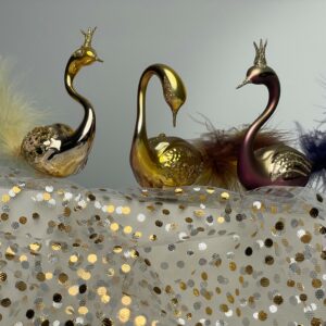 „ Tělo skleněné ozdoby labutě se nejprve vyrobí ve formě. Následuje vytažení krku, hlavy a případně na závěr korunky. A to právě dělá na výrobě labutě to složité a nejtěžší. Je velice důležitý způsob nahřátí skla tak, aby se podařilo oddělit hlavu a tělo. Pouze vyfouknutí labutě, bez malování trvá 3-4 minuty. Běžná ozdoba koule se přitom vyfoukne zhruba do dvou minut,“ uvádí Kateřina Šrámková, obchodní ředitelka značky Koulier. „Základem toho, aby uměl sklář vyfouknout labuť je umět dobře vyrobit klasický kulatý tvar koule. Poté následuje zvládnutí výroby těla ve formě a teprve potom se učí proces vytažení krku. Dobrý sklář vyrobí za jednu hodinu 2 tucty labutí. Jejich výrobu ale nezvládne každý. Ti, kteří ji ovládnou, se dají právem považovat za mistry svého oboru. Tím to celé ale nekončí Některé naše labutě mají i korunku, a to je další fáze, protože ta se dělá úplně na závěr, kdy se musí nahřát hlava a skleněná tyčinka. Sklář musí následně správně fouknout a korunku natáhnout. Následuje stříbření labutí, smáčení a malování. Práce je to unikátní, krásná a skláře baví,“ dodává Kateřina Šrámková.