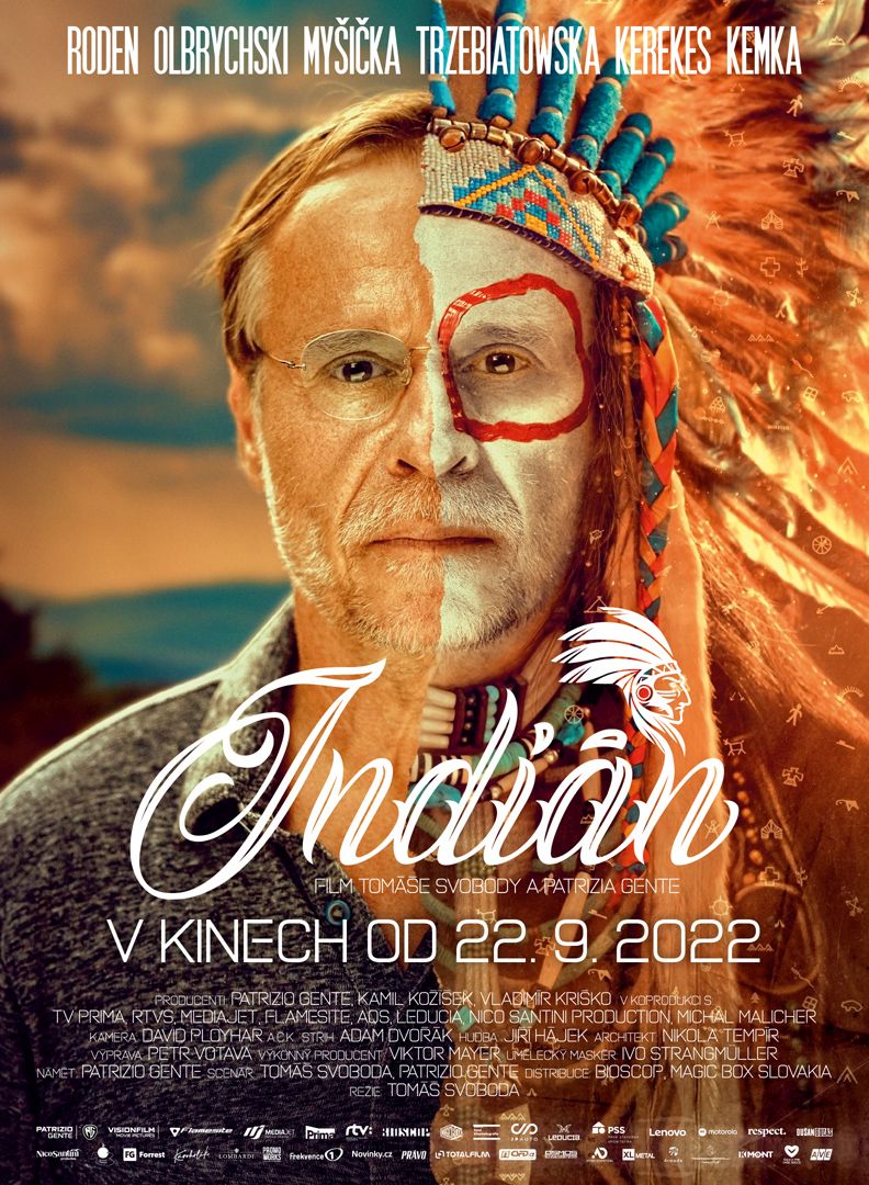 Premiéra: 22. 9. 2022 Originální název: Indián Produkce: Česká republika / Slovensko / Polsko, 2022 Formát: 2,39:1 Scope, Dolby Digital Jazyková úprava: České znění Žánr: Komedie Stopáž: 94 minut Přístupnost: Přístupný bez omezení Režie: Tomáš Svoboda Producent: Patrizio Gente, Vladimír Kriško, Kamil Kožíšek Koproducenti: MediaJet, TV Prima, RTVS, Nico Santini Production, Michal Malicher, Leducia Výkonný producent: Viktor Mayer Námět: Patrizio Gente scénář: Tomáš Svoboda, Patrizio Gente Střih: Adam Dvořák Kamera: David Ployhar Hudba: Jiří Hájek Hrají: Karel Roden, Vica Kerekes, Martin Myšička, Lukáš Latinák, Juraj Kemka, Štěpánka Fingerhutová, Jaroslav Dušek, Ester Geislerová, Vlado Černý, Anna Šišková, Jiří Dvořák, Tomáš Měcháček, Eva Leimbergerová , Martin Pechlát, Zdeněk Maryška, Tomáš Matonoha, Eva Landlová, Zuzana Kraváriková, Oliver Oswald, Daniel Olbrychski, Marta Zmuda Trzebiatowska, Magdalena Niec, Przemyslav Kapsa a další. Materiály ke stažení: https://mega.nz/folder/typF0Y6B#fHAXwk_x2mafXORzaO5iZQ Teaser: https://www.youtube.com/watch?v=mrsm5wBskQo