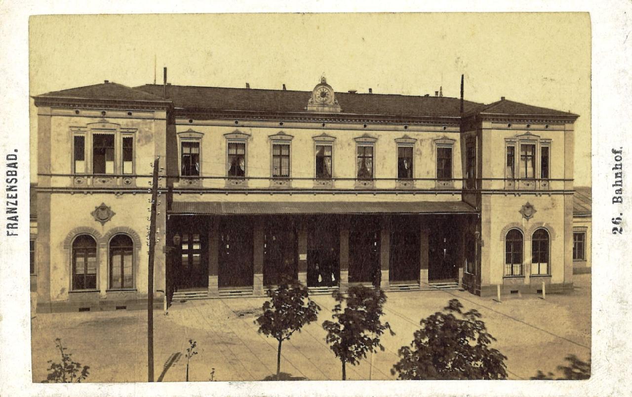 Na podzim 1864 se začalo stavět ve Františkových Lázních nádraží. Autorem návrhu nádraží byl německý architekt Friedrich Bürklein. Stavba byla dokončena koncem října 1865.