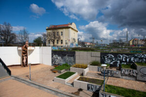 Právě s tímto místem pracuje umělec Hynek Skoták. Ve vizuálně složitém prostředí betonových soklů, laviček, truhlíků a dnes téměř nepoužívaného schodiště u stanice metra si Skoták vybral výsek zasahující do chodníku i stěny. Odstranil odpadky, graffiti, náletové dřeviny, místo ztvrdlé hlíny dovezl na místo úrodnou zeminu, do které zasadil traviny a květiny. Vznikl tak projekt s názvem Horror vacui, site-specific intervence do městského prostředí, která pracuje s jeho charakterem. Do prostoru nepřidává nové prvky, ale naopak je ubírá, vytváří „prázdno“.
