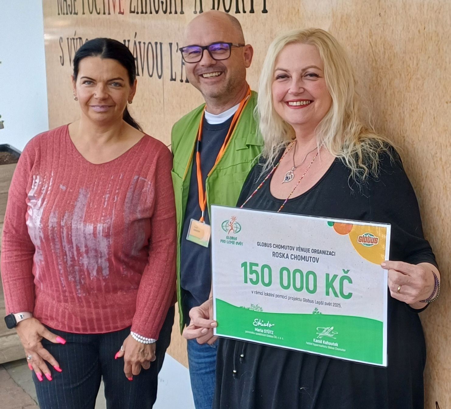 Globus Olomouc – JAN – Jdeme Autistům Naproti z. s. (100 000 Kč na podporu komunitního centra pro klienty s poruchou autistického spektra) a Centrum sportovní přípravy dětí a mládeže, z. s. (50 000 Kč na sportovní kempy v srpnu 2025, dále na pravidelnou všeobecně pohybovou přípravu dětí, která je vedená odborníky v oblasti sportu, hlavně pak basketbalu atd.)