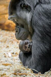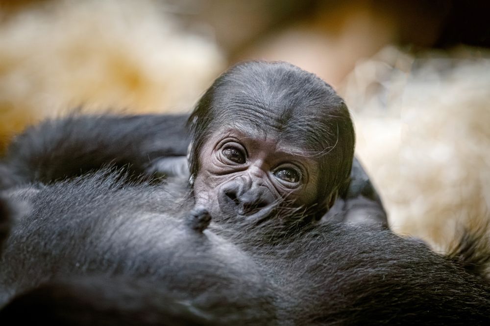 Foto 1: Mládě gorily nížinné se v Zoo Praha narodilo samici Duni 2. ledna krátce po deváté hodině večerní. Jde o vůbec první gorilí mládě narozené v novém pavilonu Rezervaci Dja. Pokud vše půjde dobře, dočká se pražská zoo v horizontu tří měsíců ještě jednoho mláděte. Březí je totiž i samice Kijivu. Foto Miroslav Bobek, Zoo Praha
