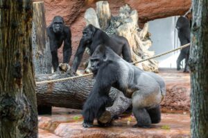 Velké spojování goril v Zoo Praha včera proběhlo bez většího rozruchu. Nováčci Kisumu a Duni se setkali se zbytkem skupiny – samicemi Kijivu, Shindou, Kambou a malým samečkem Ajabuem. Po pondělních drobných roztržkách je dnes situace o poznání klidnější. Návštěvníci mohou čerstvě sdruženou šestici goril pozorovat už nyní v pavilonu Rezervace Dja.