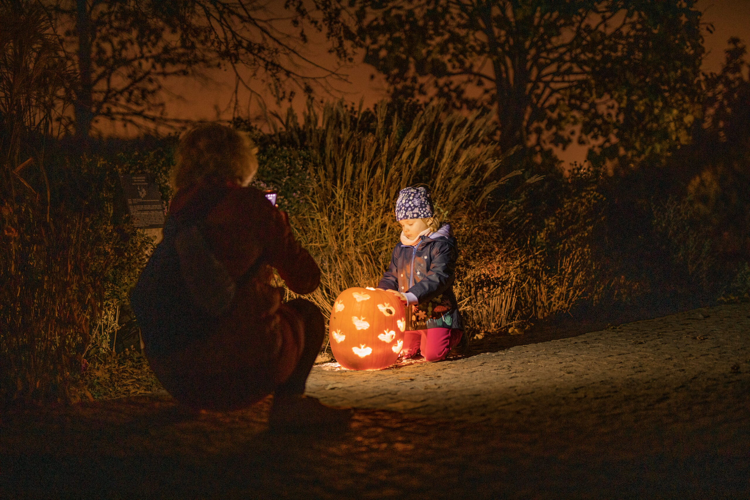 Halloween v botanické zahradě v Troji – dýně, strašidelné masky, opékání špekáčků i lampionový průvod