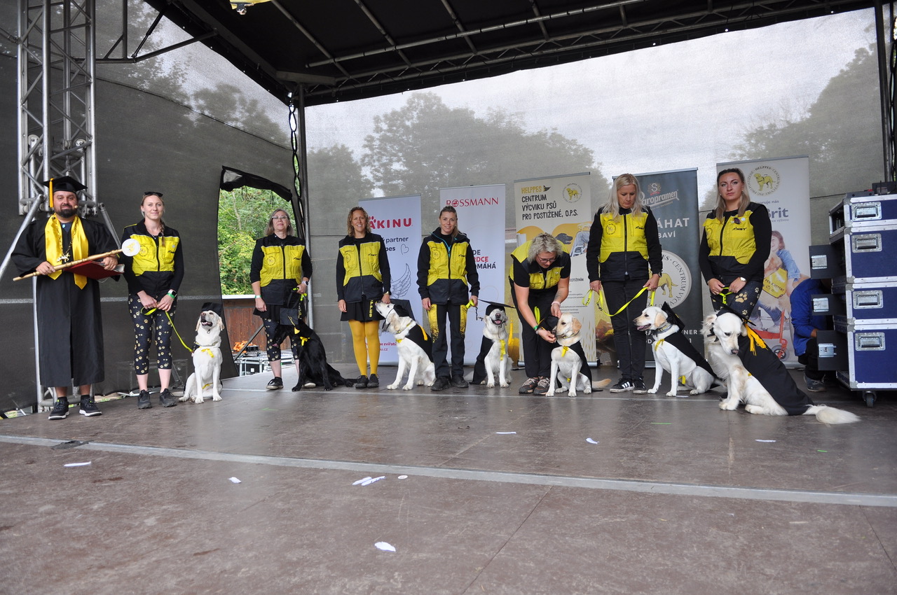 Slavnostní událost si nenechali ujít dárci, dobrovolníci, rodiny klientů ani známé osobnosti, které se ujaly symbolického předávání psích asistentů. O příjemnou atmosféru se postarali moderátoři Patricie Solaříková, Jan Čenský a Mirek Konvalina, kteří provázeli programem celého dne plného hudby, ukázek výcviku a setkávání absolventů minulých ročníků.