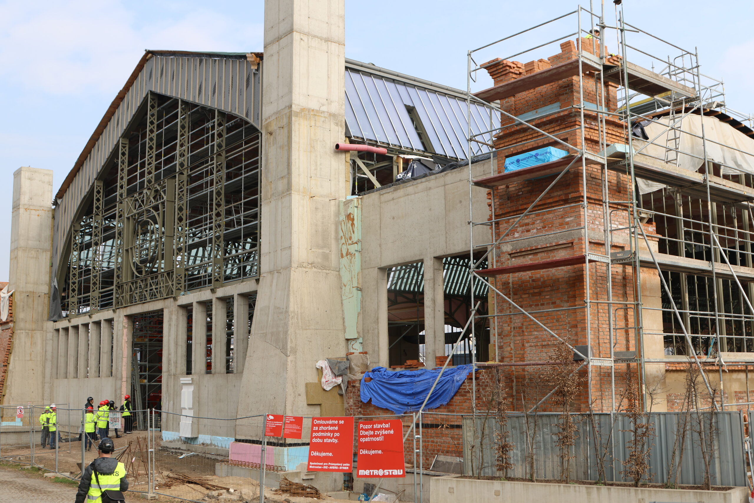 V době třetího roku rekonstrukce a dostavby Průmyslového paláce právě dokončujeme střechy na levém křídle a střední hale s hodinovou věží. S nástupem jarních měsíců budeme moci zintenzivnit činnosti na pravém křídle. Zde nám totiž objekt, který byl v této části původně zamýšlen jako dočasná stavba, během stavebních prací připravil řadu překvapení. Po nutných úpravách projektové dokumentace práce běží podle aktualizovaného harmonogramu. Nyní pokračujeme v postupné demontáži stropní vestavby a během tohoto roku máme v plánu zejména realizace venkovních i vnitřních omítek a hrubých podlah,“ uvedl David Čech vedoucí projektu ze společnosti Metrostav DIZ, která je lídrem sdružení zhotovitelů, jehož dalšími členy jsou firmy AVERS, SYNER a Metrostav.