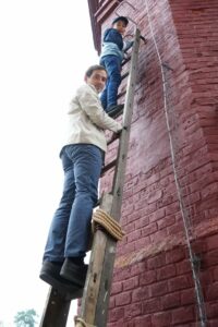 Pro herce Matouše Rumla a jeho skutečného syna Nathanaela, který hraje v seriálu Hořký svět jeho syna Honzíka, bylo toto natáčení celkem výjimečné. Jako táta před ním měl respekt, jako herec to bral jako fajn výzvu. Štěpán Berka totiž vezme svého syna Honzíka na vrchol komína pivovaru, který právě zdědil. „Natáčelo se to tak, že jsme měli plošinu, na které jsme s Nathanaelem byli, ale nelezli jsme až na vrchol samotného komínu. Tam nás zastoupili kaskadéři. My jen točili pár záběrů, jak na ten komín šplháme,“ prozrazuje filmové triky herec. „Zažili jsem ale takový fór, kdy jsme měli tu špičku komínu postavenou na poli – a tam se točil náš rozhovor. Dost těžko by se tam s kamerou dostávalo a museli bychom být jištění. V rámci bezpečnosti bylo toto lepší,“ přiznává Ruml a je rád, že to filmaři nakonec vymysleli takto. „Bylo lepší cítit se bezpečně a hrát, než kdybychom byli ve výšce a řešili strach. Tohle byla lepší varianta.“