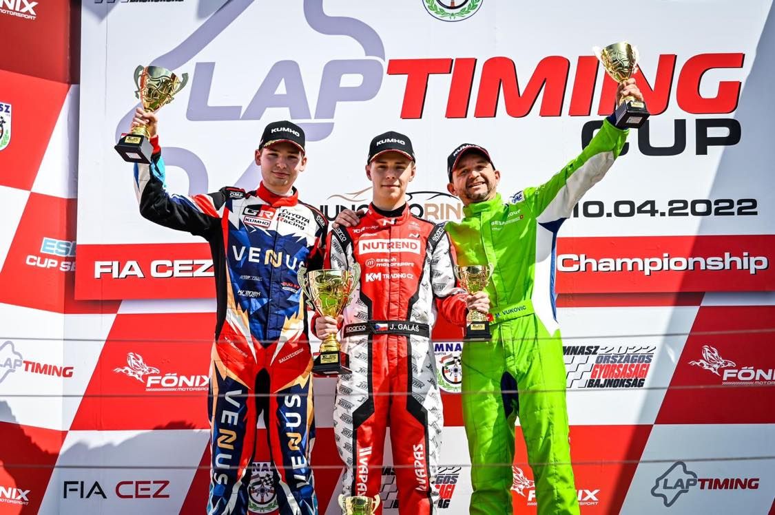 Nejlépe do prvního závodu vstupoval Galáš, pro kterého vedení závodu skončilo již ve druhé zatáčce po nešťastném kontaktu s Groszkem a Vesničem. Tento incident zapříčinil poškození vozu, se kterým se již v závodu nedalo pokračovat. Týmový kolega Homola se po startu propadl až na šestou příčku, ale svým skvělým výkonem se mu podařilo dokončit závod na druhém místě. Jen těsně za pódiovým umístěním dokončil závod Petr Semerád, který bral čtvrté místo v závodu. Dobře rozjetý závod se nepodařilo dokončit Václavovi Janíkovi, kterého ze závodu vyřadila technická závada.