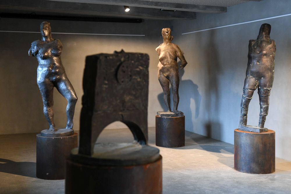Výstava Sochy a mosty se nesnaží o chronologický přehled, nechává diváka volně projít podél vystavených mostů a vnímat jejich různé tvary, charaktery, hledat postavy zakleté do abstrahovaných siluet, znaků a symbolů a objevovat příběhy. Některé mosty jsou místem setkání nebo loučení, jiné jsou svědky pádu a tragédie, další jsou němými svědky plynutí vody a času bez přítomnosti lidské postavy. Malé komorní plastiky jsou vytvořeny z různých materiálů, modelované z hlíny, odlité či vytepané do kovu.