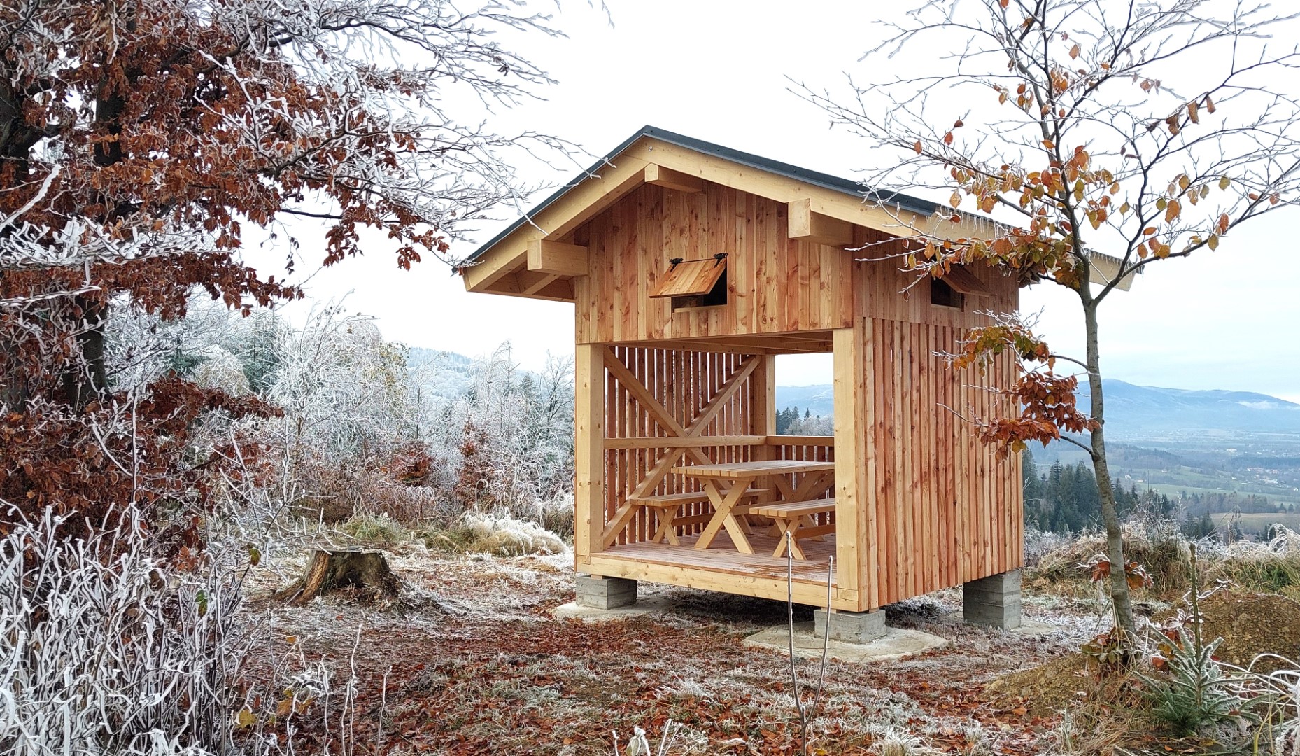 První přístřešek stojí nad osadou Severní na Rumbursku nedaleko nejsevernějšího bodu České republiky. Poslední dva pak na Vysočině jen pár kilometrů od Jihlavy (GPS: 49.4243278N, 15.6386719E) a na jižní Moravě kousek