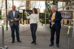 Foto 3: Výstava fotografií Miroslava Bobka s názvem „Něžní obři“ nechává návštěvníky nahlédnout do fascinujícího života goril východních. Pásku přestřihli ředitel Zoo Praha Miroslav Bobek, herečka Veronika Khek Kubařová a filmový režisér F. A. Brabec. Akcí provázel moderátor Jan Kovařík. Foto Khalil Baalbaki, Zoo Praha
