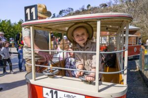 Foto 4: Dnešním dnem byl obnoven provoz oblíbené dětské tramvajky. Jako první se v ní svezly děti, které v rámci módní přehlídky předvedly dětskou verzi uniforem zaměstnanců Zoo Praha. Foto Petr Hamerník, Zoo Praha