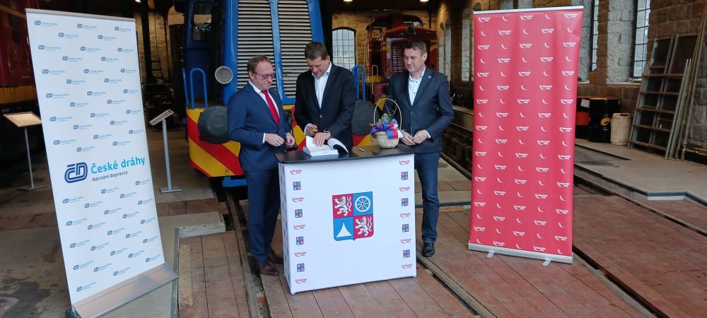 Zástupci Českých drah a Libereckého kraje dnes v objektu historické Výtopny Kořenov podepsali smlouvu, která zajistí provoz vlaků mezi Libercem a Harrachovem a v oblasti Frýdlantska. Ta bude platit od prosince roku 2026 až do roku 2033.