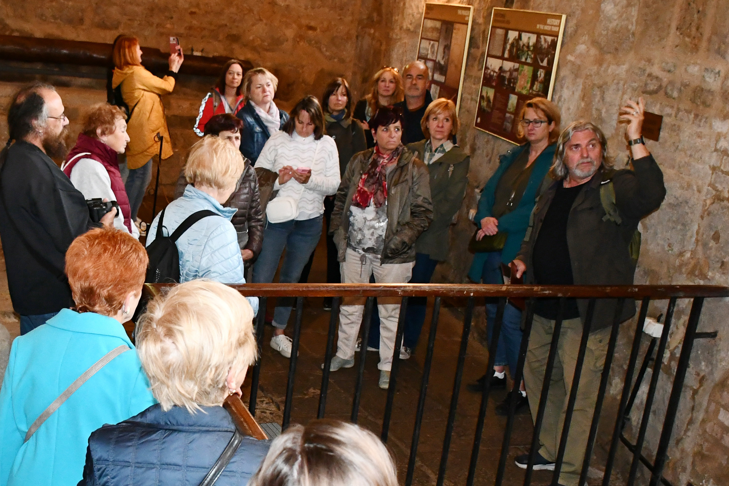 Foto bylo pořízeno v útrobách Vodárenské věže, odkud vedla devadesátiminutová trasa, během které se přítomní mimo jiné dozvěděli historii původních kašen, které stály na místech těch stávajících (viz foto).