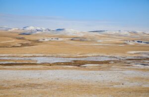 Foto 2: Údolí klášterů s klikatící se Hákovitou řekou (řeka Degé). Koně Převalského by tuto oblast na východě Mongolska mohli obydlet již v roce 2026. Foto Miroslav Bobek, Zoo Praha