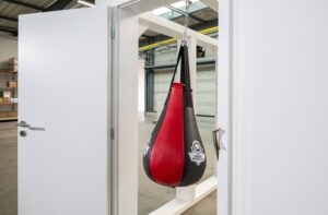 Běžný normovaný test dle ČSN ověřuje pevnost uchycení dveřního křídla v zárubni, a tudíž odolnost proti vyražení. Využívá zátěžového pytle o hmotnosti 30 kilogramů, který narazí do plochy dveří z přesně zadané výšky. „Kvalita uchycení dveří k zárubni v místech pantů a protiplechu se ukáže celkem rychle,“ uvádí Tomáš Pilský z VEKRY a pokračuje s výsledky testu: „U dveří
