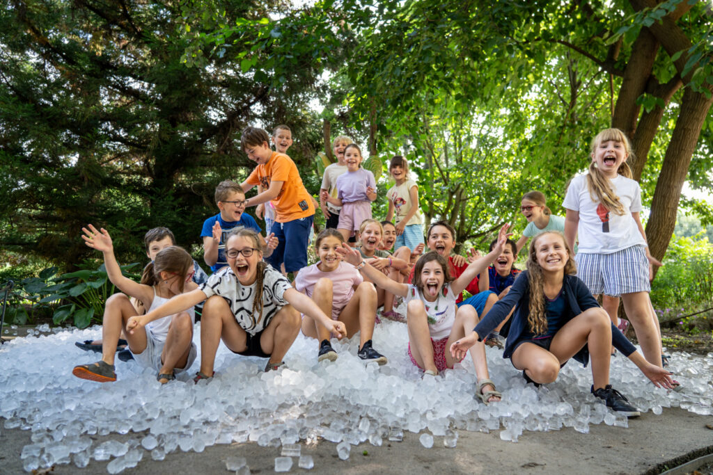 Foto 4: Ledové kostky ocenili zejména mladší návštěvníci. Už v dopoledních hodinách se ke kupě ledu poblíž Dětské zoo přišly ochladit desítky dětí. Foto Oliver Le Que, Zoo Praha