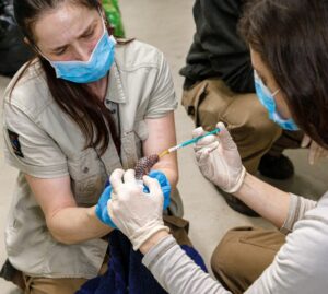 Foto 2: Chovatelský tým Zoo Praha se k dokrmování mláděte luskouna uchýlil po konzultaci s kolegy z Taipei Zoo. Matka mláděte – samice Run Hou Tang – totiž nemá dostatek mateřského mléka. Foto Miroslav Bobek, Zoo Praha