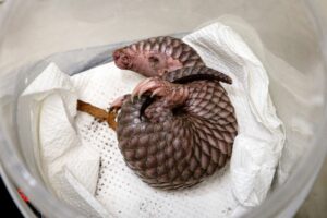 Foto 3: Luskouní samička narozená v Zoo Praha je prvním mládětem těchto jediných šupinatých savců světa v celé Evropě. Foto Miroslav Bobek, Zoo Praha