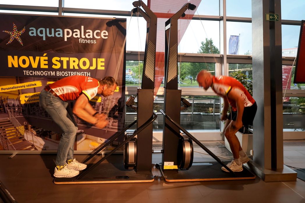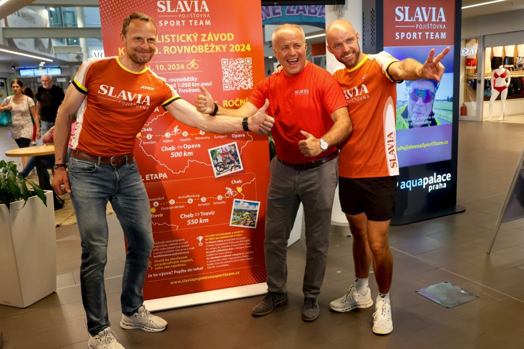 Slavia pojišťovna Sport Team zprostředkoval v Praze médiím i amatérským členům svého týmu setkání s lyžařskými legendami Stanislavem Řezáčem a Tord Asle Gjerdalenem (NOR). Oba úspěšní sportovci jsou letos ambasadory unikátního cyklistického závodu napříč republikou Král 50. rovnoběžky ale také ve Fitness Aquapalace Praha v praxi ukázali trénink na speciálním trenažeru určeném pro přípravu běžců na lyžích.