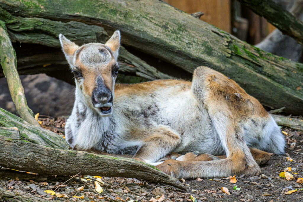 Foto 5: Vzácný sob karelský je jediný divoký poddruh soba, který se v Evropě chová a množí v lidské péči. V expozičním celku Severský les naleznou lidé dvě letošní mláďata. Foto Petr Hamerník, Zoo Praha