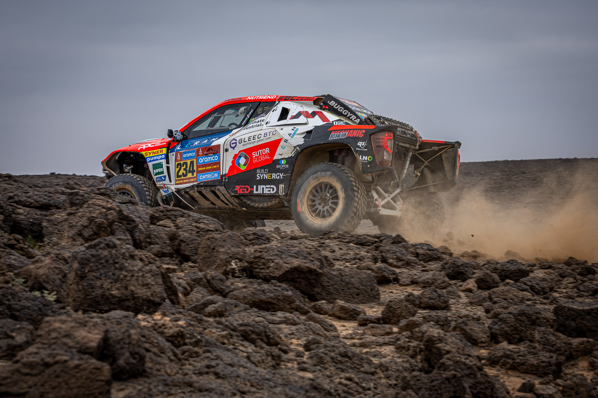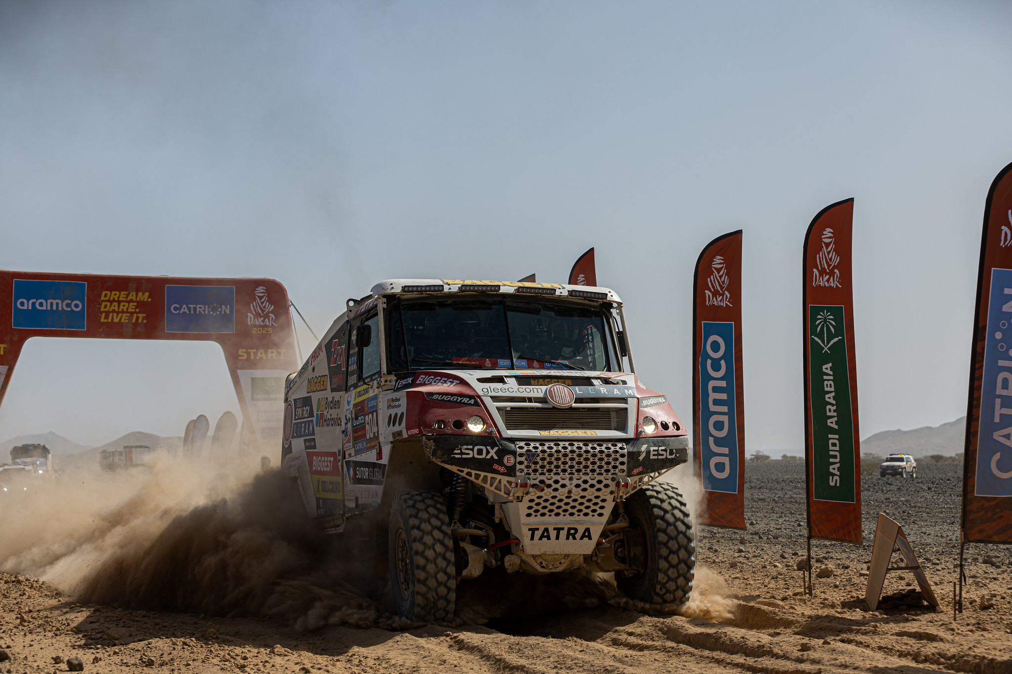 Po spojených dvou etapách ve formátu Chrono48 začala dnes na Rallye Dakar další náročná zkouška. Posádky Buggyry mají za sebou první část maratonské etapy, při níž není v bivaku povolena asistence. Extrémní navigace vyšla nejlépe pilotovi speciálu Tatra Buggyra EVO3 Martinu Šoltysovi, který se průběžně v hodnocení kamionů posunul na výborné páté místo. Aliyyah Koloc skvěle odstartovala a do třístého kilometru se držela do 20.místa, pak však musela na svém autě Red-Lined REVO T1+ dokonce hasit požár poloosy. „Máme za sebou další extrémně těžkou etapu. Letošní Dakar 2025 dává všem nevídaně zabrat. Struktura všech etap i jejich posloupnost, jsou nesmírně náročné. Náš tým ale zvládá svoji práci výborně a funguje podle očekávání skvěle,“ řekl spokojený šéf Buggyry Martin Koloc. Martin Šoltys, jezdec Tatra Buggyra ZM Racing, se výborně vypořádal s navigačními nástrahami trati dnešní čtvrté etapy. Byl v ní klasifikován pátý. K posunu v celkovém pořadí mu napomohlo i rozhodnutí pořadatelů vyhovět protestu Buggyry.