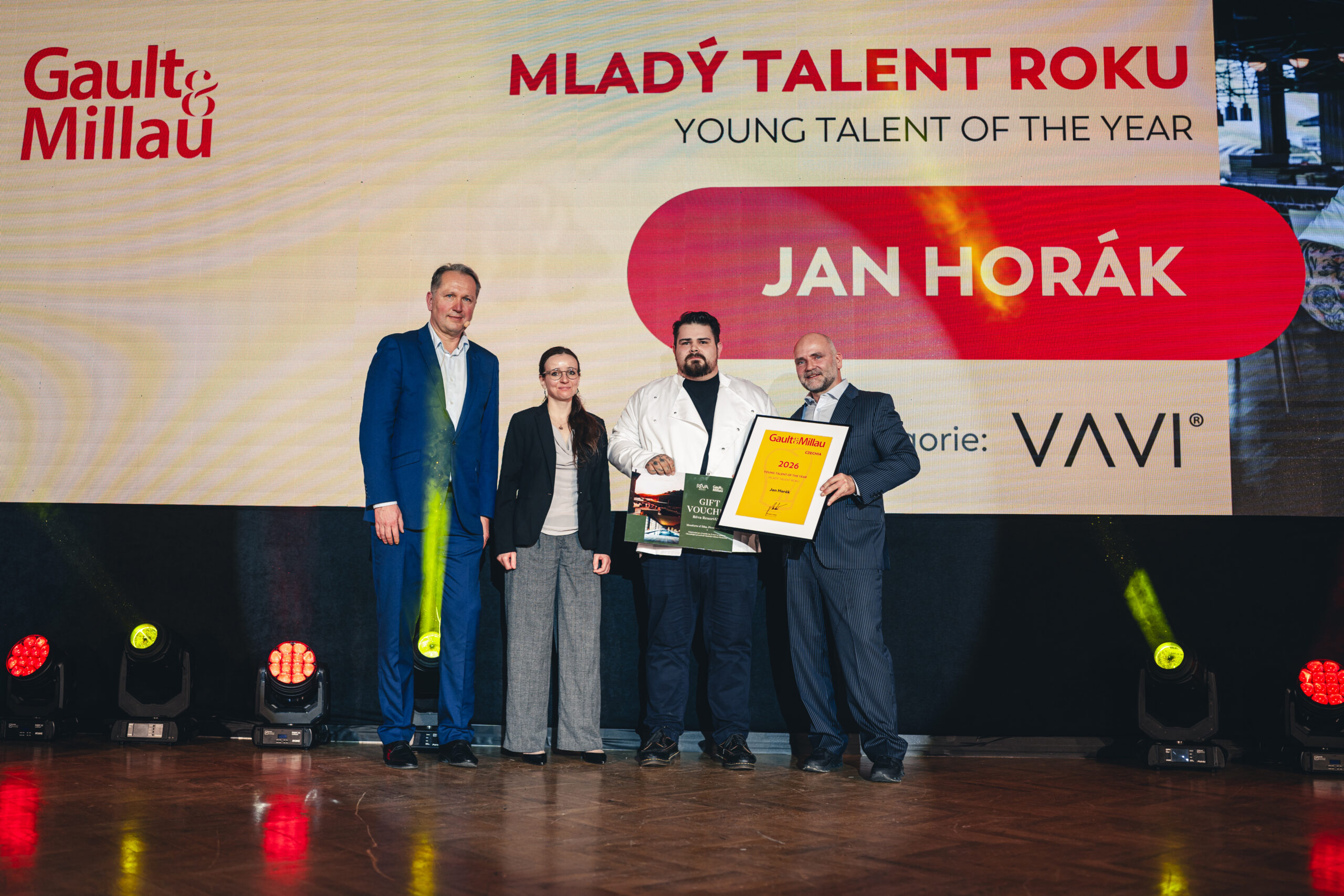 Organizátoři z Gault&Millau na galavečeru předali trofeje výjimečným osobnostem či podnikům české gastronomie hned v osmi kategoriích. Šéfkuchařem roku 2026 se stal Oldřich Sahajdák, chef patron restaurace La Degustation Bohême Bourgeoise. Šéfkuchařem zítřka je Khanh Ta (TARO), Mladým talentem roku Jan Horák (Reason), Cukrářkou roku Sabina Keltnerová (Štangl), Someliérem roku Vít Eliáš (Zlatá Praha), Šéfkuchařem tradiční kuchyně Jiří Hrachový (Výčep), POPem roku kavárna a bistro DOK v Liberci a Gourmet hotelem roku Fairmont Golden Prague.