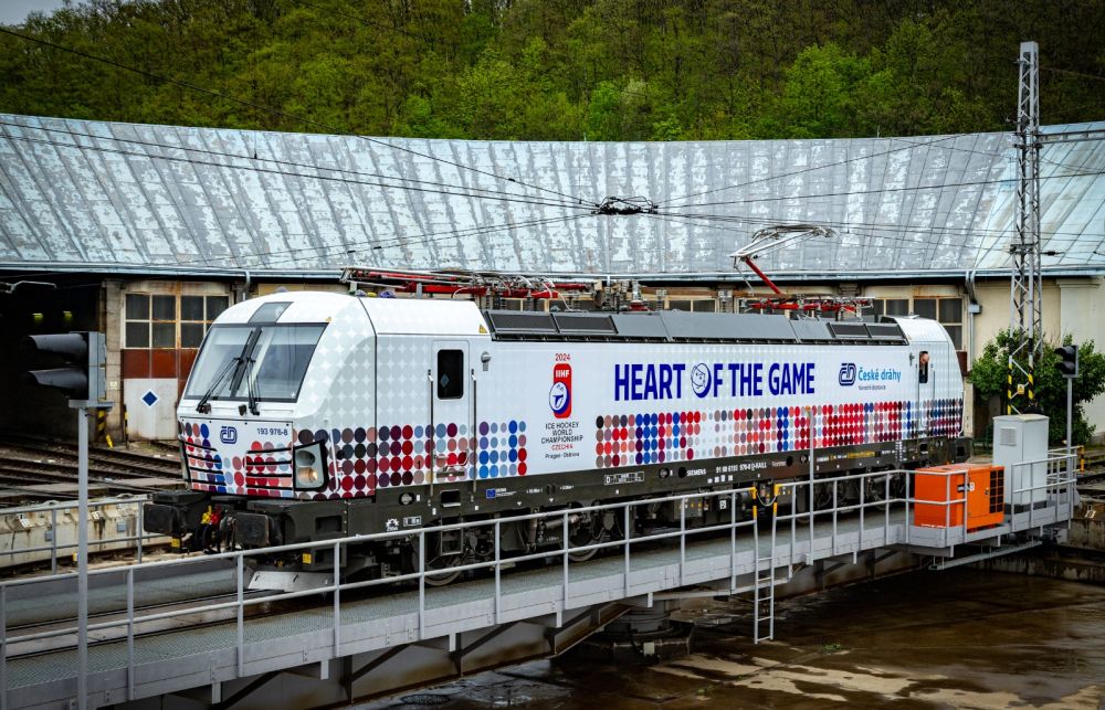 Již více než tři týdny se cestující mohou setkat v provozu i se speciálně polepenou lokomotivou Siemens Vectron, která na sobě nese logo šampionátu a hlavní motto „Heart Of The Game“.