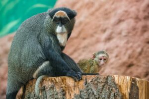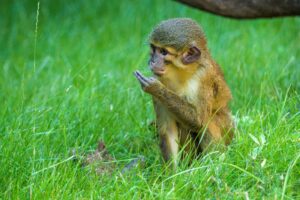 Foto 3: Samec talapoina severního Šklíba zkoumá vnitřní i vnější výběh, kde se za hezkého počasí rád sluní. Foto Petr Hamerník