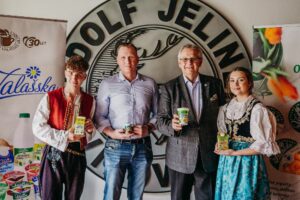 Zleva: Zdeněk Bukovjan – obchodní ředitel Mlékárny Valašské Meziříčí a Ing. Jiří Kopáček, CSc., předseda Českomoravského svazu mlékárenského (ČMSM)