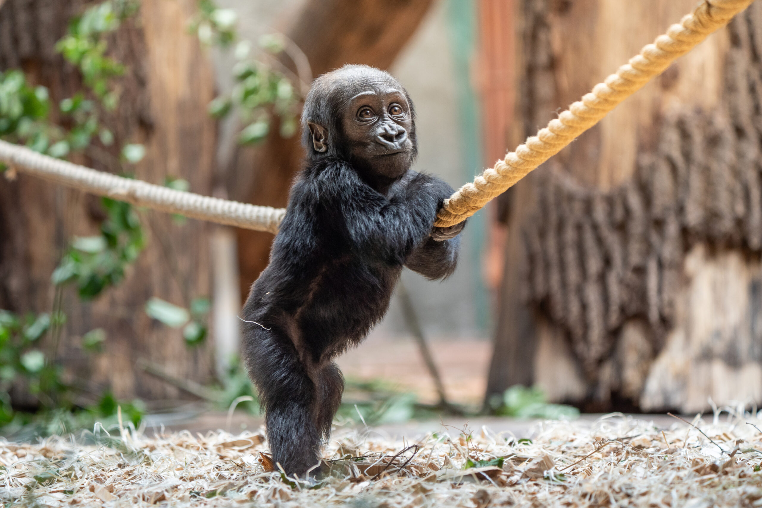 Gorilí samička Mobi narozená v lednu v Zoo Praha je aktuální hvězdou pavilonu Rezervace Dja. Učí se totiž chodit a věšet se na lano, přičemž její matka Duni jí dovoluje stále odvážnější výpravy po okolí. Bezmála půlroční mládě se snaží komunikovat také s guerézami pláštíkovými, které obývají tutéž expozici, a přes sklo i s návštěvníky. Mobi také nově začala vyhledávat kontakt s druhým mládětem, dvouapůlměsíční Gaiou.