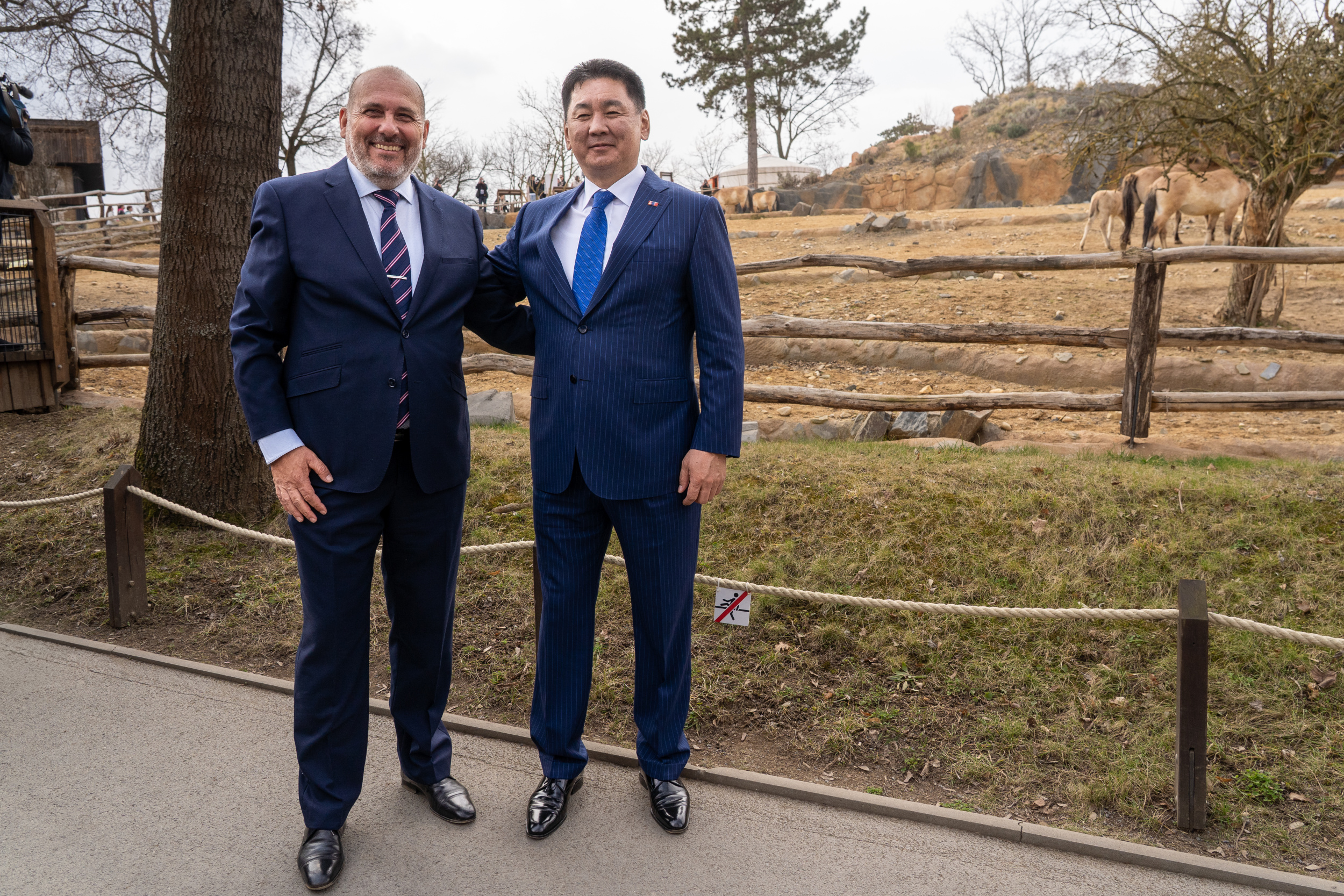 Foto 2: Ředitel Zoo Praha Miroslav Bobek a prezident Mongolské republiky Uchnágín Chürelsüch u mongolské expozice Gobi v Zoo Praha. Foto Oliver Le Que, Zoo Praha