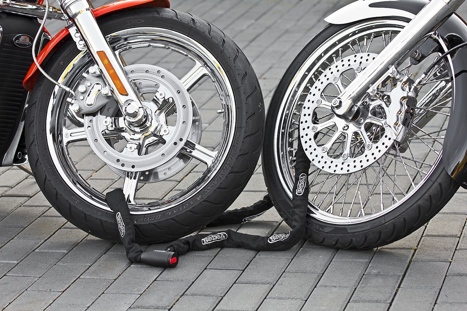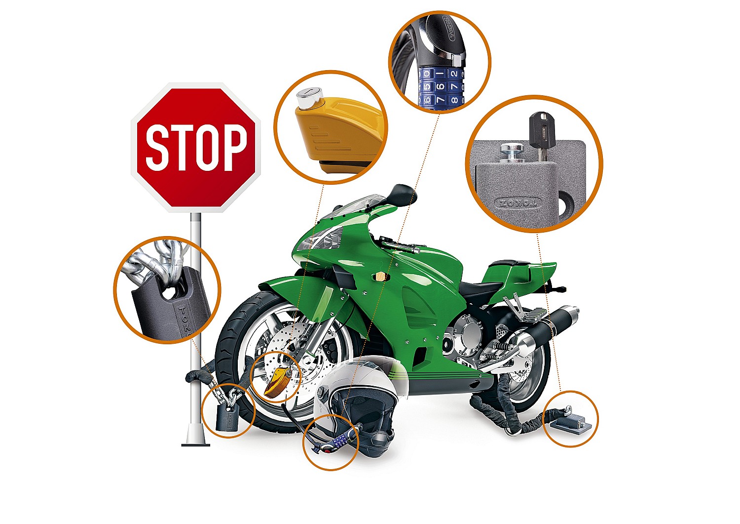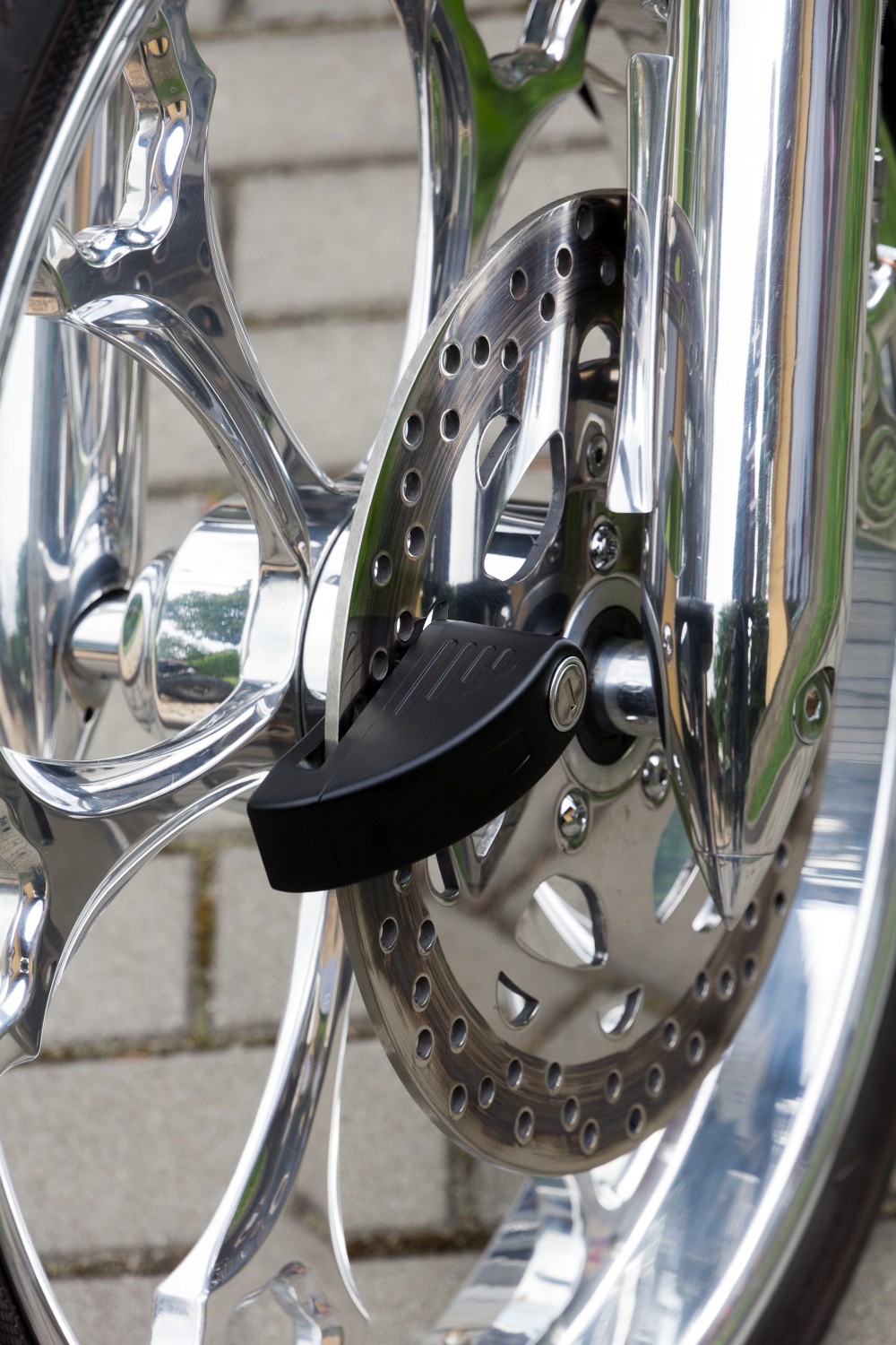 Při parkování motorky venku – třeba na srazech, festivalech nebo v kempech – se hodí zámek s alarmem, který reaguje na manipulaci s motorkou a vydává zvuk o 110 db. Zámek se připevní na kotoučovou brzdu a pohybové čidlo dá vědět ve chvíli, kdy se někdo pokusí motorku například naložit do dodávky,“ doplňuje Petr Neuvirt z Tokoz.
