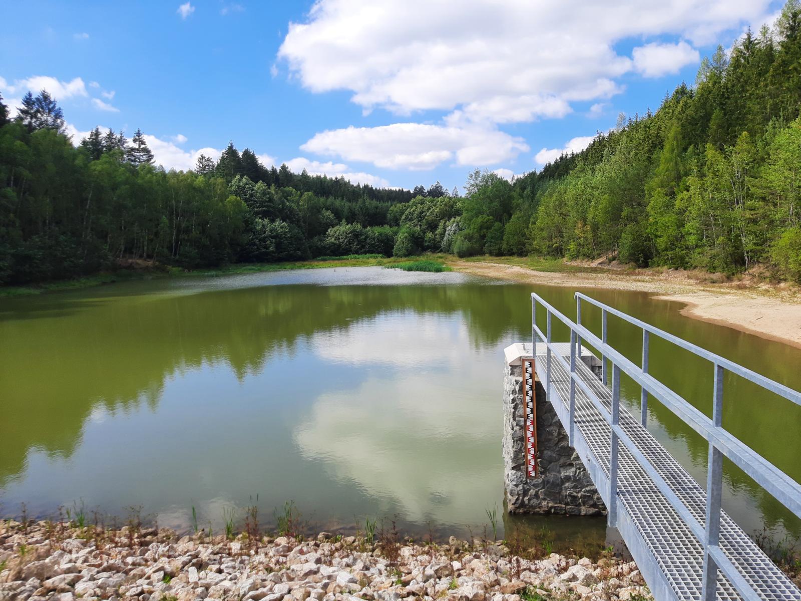 Na 1,5 hektarech dnes nádrž pojme více než 50 tisíc metrů krychlových vody. „Poté jsme stabilizovali zemní hráz