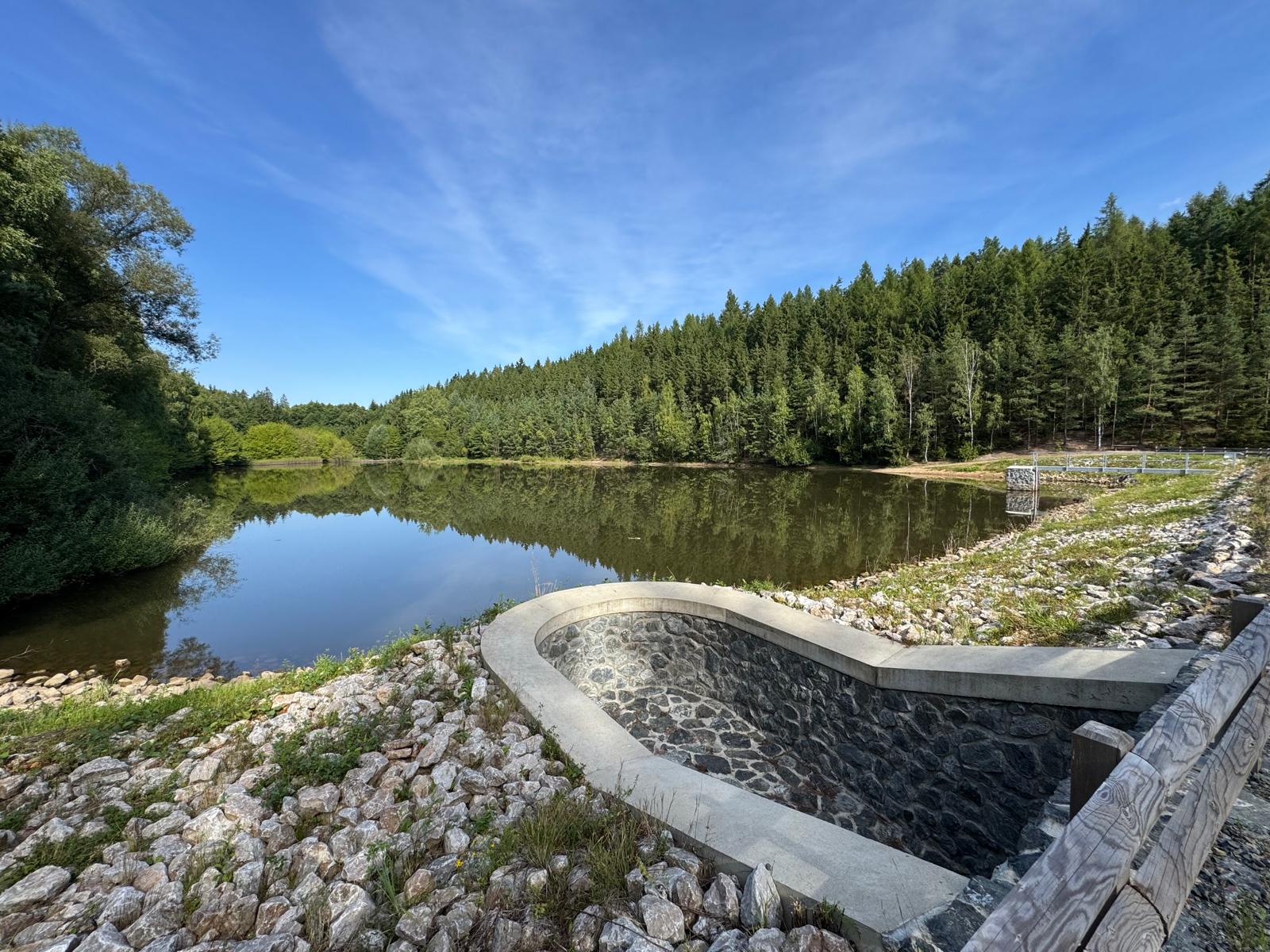 Na 1,5 hektarech dnes nádrž pojme více než 50 tisíc metrů krychlových vody. „Poté jsme stabilizovali zemní hráz