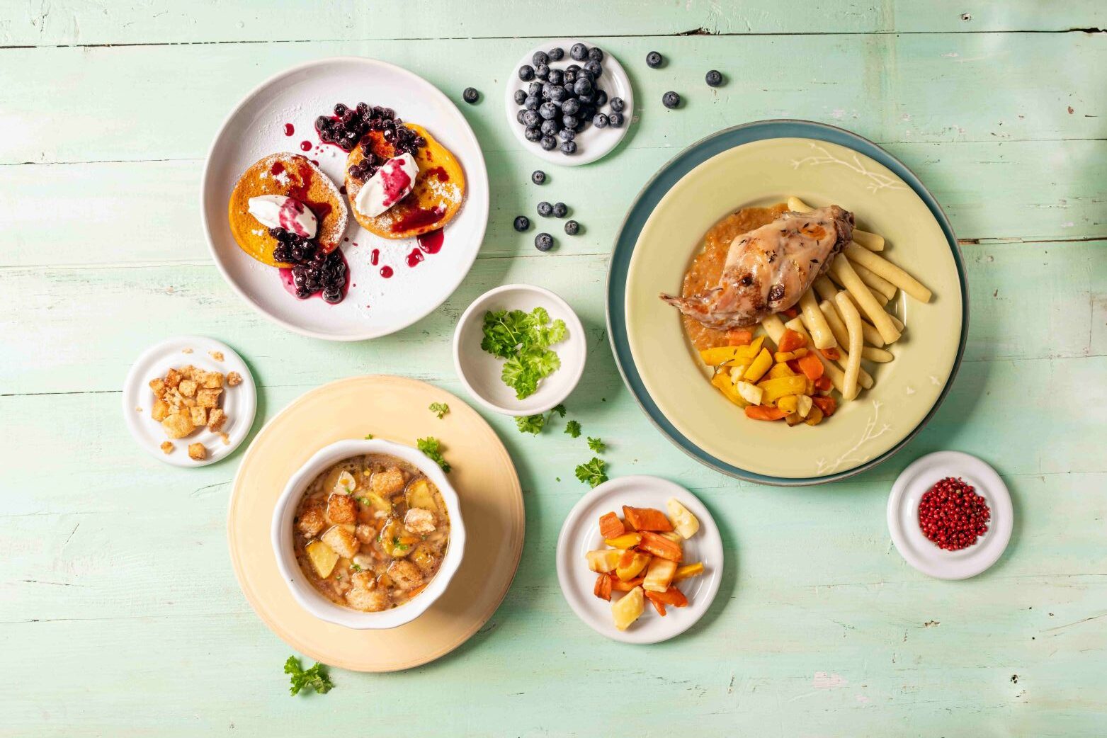 Nové sezónní menu doplňuje stálý jídelní lístek, k dostání tak zůstávají oblíbené stálice, jako např. svíčková, kuřecí řízek s bramborovým salátem nebo snídaňová nabídka.