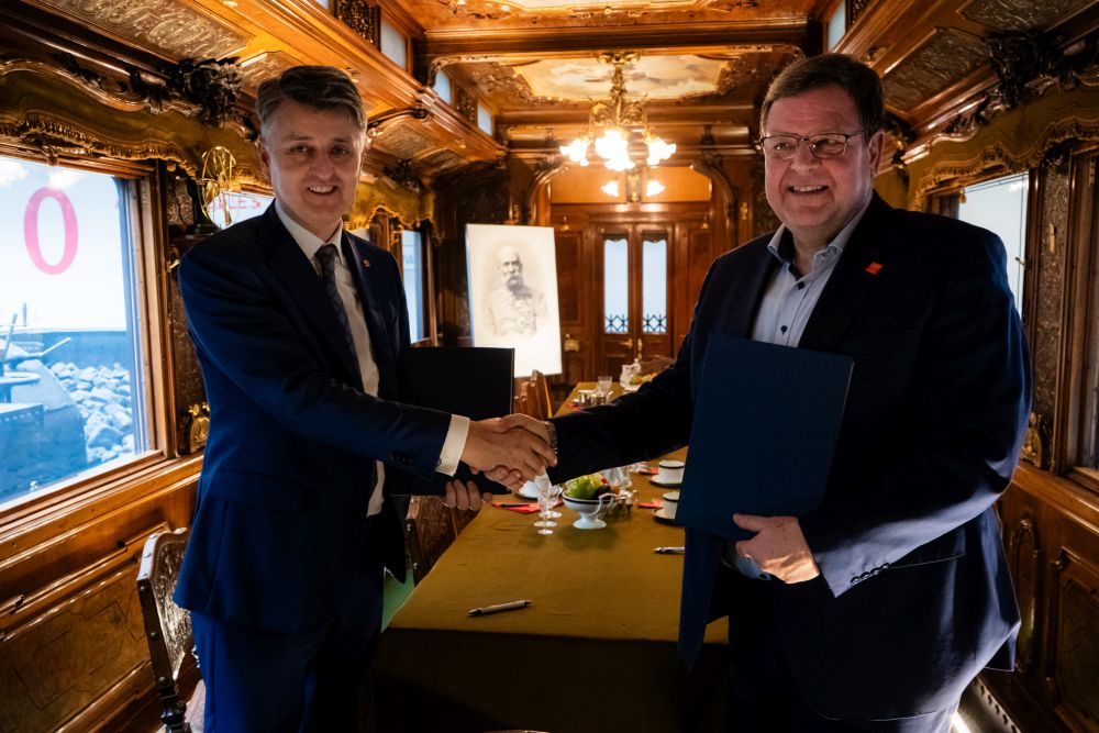 Smlouvu o předání podepsali ve středu 14. února 2024 v jídelním voze dvorního vlaku císaře Františka Josefa I. v dopravní hale muzea generální ředitel NTM Karel Ksandr a generální ředitel SŽ Jiří Svoboda. Obě instituce tak pokračují v úspěšné spolupráci, jejímž cílem je přispět k zachování a popularizaci železniční infrastruktury v její současné i historické podobě.