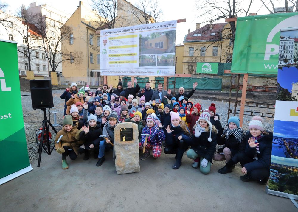PRAHA (8. února 2023) Slavnostním položením základního kamene dnes začala výstavba pavilonu pro žáky prvních tříd Základní školy u svatého Štěpána. Ten vznikne v zahradě základní školy na pozemku ve vlastnictví Arcibiskupství pražského, které s výstavbou souhlasilo. Pavilon z ekologicky udržitelných materiálů bude zcela bezbariérový a poskytne dětem důležité spojení s přírodou.